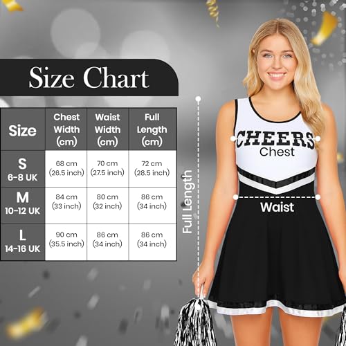 Dieses Damen Cheerleader Kostüm ist perfekt für alle spaßigen Anlässe! Hergestellt aus weichem, elastischem Material, bietet es hohen Tragekomfort und ist in 6 Größen erhältlich. Mit den passenden Pompons bist du bereit, jede Veranstaltung aufzupeppen. Ideal für Halloween, Mottopartys oder einfach nur zum Feiern!