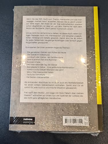 Dieses 4-teilige Set enthält alles, was man für die Pflege einer Glatze braucht: ein Glatzenbuch, einen Glatzen-Kamm, Glatzen-Politur und Glatzen-Shampoo. Perfekt als Geburtstagsgeschenk oder für einen Scherz. Hol dir dieses Set und bringe Freude in das Leben eines Glatzenträgers!