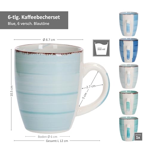 Das MamboCat Kaffeebecher Set Blue Baita umfasst 6 große Tassen in maritimen Blautönen. Ideal für Kaffee, Kakao oder Tee, sind sie perfekt für Familienfeiern oder Grillpartys. Ein stilvolles Geschirr, das jeden Tisch aufwertet!