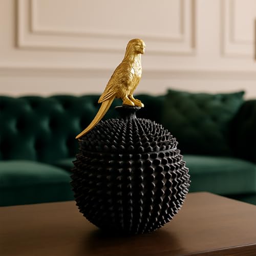 Die Kare Design Deko Dose Parrot ist ein beeindruckendes Aufbewahrungsobjekt, das mit einem goldenen Papagei auf einer schwarzen Stachelkugel begeistert. Mit den Maßen 40x26x26 cm bietet sie nicht nur ausreichend Stauraum, sondern ist auch ein stilvolles Deko-Element für jedes Zuhause. Der spannende Strukturmix und das moderne Design machen diese Dose zum perfekten Blickfang in jedem Raum. Nutze sie als dekorative Aufbewahrungslösung und bringe einen Hauch von Exotik in dein Interieur!