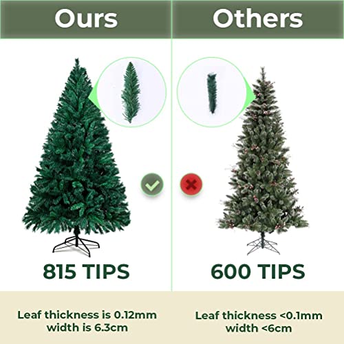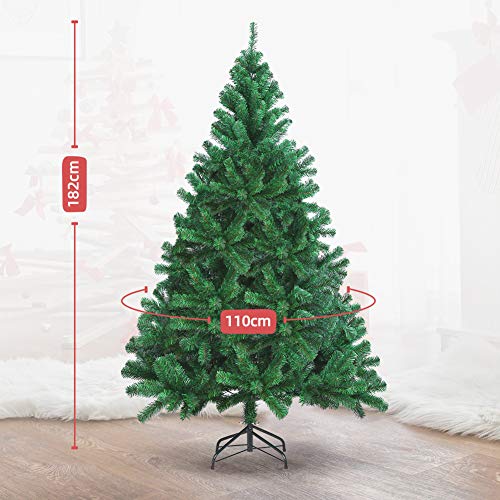 Der OUSFOT Weihnachtsbaum ist 182 cm hoch und bietet mit seinen ca. 800 Ästen eine üppige Optik. Hergestellt aus schwer entflammbarem PVC, sorgt er für Sicherheit und Langlebigkeit. Das innovative Klappsystem ermöglicht einen schnellen und einfachen Aufbau, sodass du mehr Zeit für die festliche Dekoration hast. Inklusive einem stabilen Metallständer ist dieser Baum ideal für jedes Zuhause und bringt festliche Freude in deine Weihnachtszeit.
