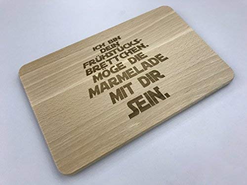 Das Frühstücksbrett aus hochwertigem Buche Holz ist mit dem witzigen Spruch „Möge die Marmelade mit dir sein“ graviert. Mit den Maßen von ca. 22 x 14 x 1 cm ist es nicht nur praktisch, sondern auch ein echter Hingucker auf jedem Frühstückstisch. Ideal als Geschenk für Freunde der dunklen Macht oder für dich selbst – starte deinen Tag mit einem Lächeln!