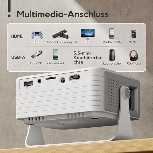 Der AKIYO O1 Mini Beamer ist der perfekte Begleiter für Filmabende und Präsentationen. Mit Full HD 1080P Unterstützung und einem praktischen Stativ kannst du überall ein Heimkino-Feeling schaffen. Kompatibel mit Smartphones, Laptops und Spielkonsolen wie PS5, ist dieser Beamer vielseitig einsetzbar. Überrasche deine Kinder mit einem unvergesslichen Filmabend oder präsentiere deine Ideen professionell – der Mini Beamer macht es möglich!