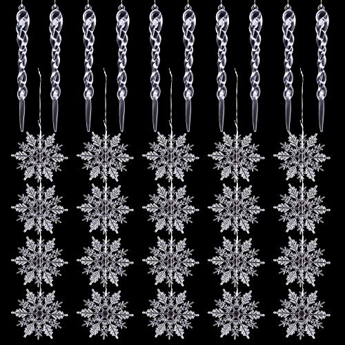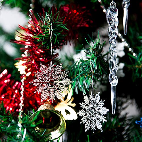 Verleih deiner Weihnachtsdekoration einen Hauch von Winter mit den Naler Eiszapfen. Dieses 30-teilige Set enthält 20 Schneeflocken und 10 Eiszapfen aus transparentem Acryl, die mit silbernen Bändchen zum Aufhängen versehen sind. Ideal für Weihnachtsbäume, Fenster oder als Tischdekoration, sorgen die verschiedenen Größen und Designs für eine festliche Atmosphäre in deinem Zuhause. Mach deine Feiertage unvergesslich!