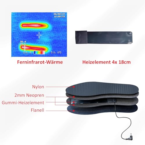 Nie wieder kalte Füße! Diese hochwertigen beheizbaren Einlegesohlen mit Ferninfrarot-Heizelementen bieten eine gleichmäßige Wärmeverteilung und sind in der Größe zuschneidbar. Mit 4 Heizstufen und einer Akkulaufzeit von bis zu 7 Stunden sind sie ideal für alle Outdoor-Aktivitäten im Winter. Sichern Sie sich Ihre Thermrup Einlegesohlen und genießen Sie warme Füße!