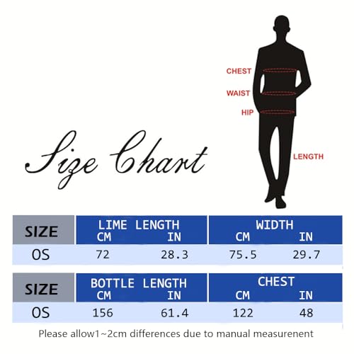 Erlebe unvergessliche Momente mit dem Wodka und Limette Kostüm von EraSpooky! Dieses witzige Duo aus zwei Tuniken bringt jede Feier in Schwung. Hergestellt aus 100 % Polyester, sind die leichten Tuniken bequem über deiner Kleidung zu tragen. Eine Tunika zeigt eine Wodkaflasche, die andere eine grüne Limette – perfekt für ein unvergessliches Halloween! Mit diesem Kostüm wirst du garantiert die Blicke auf dich ziehen, egal ob du alleine oder im Duo feierst. Das Set enthält zwei Tuniken und eine Limetten-Kopfbedeckung. Pflegeleicht und ideal für jede Party!